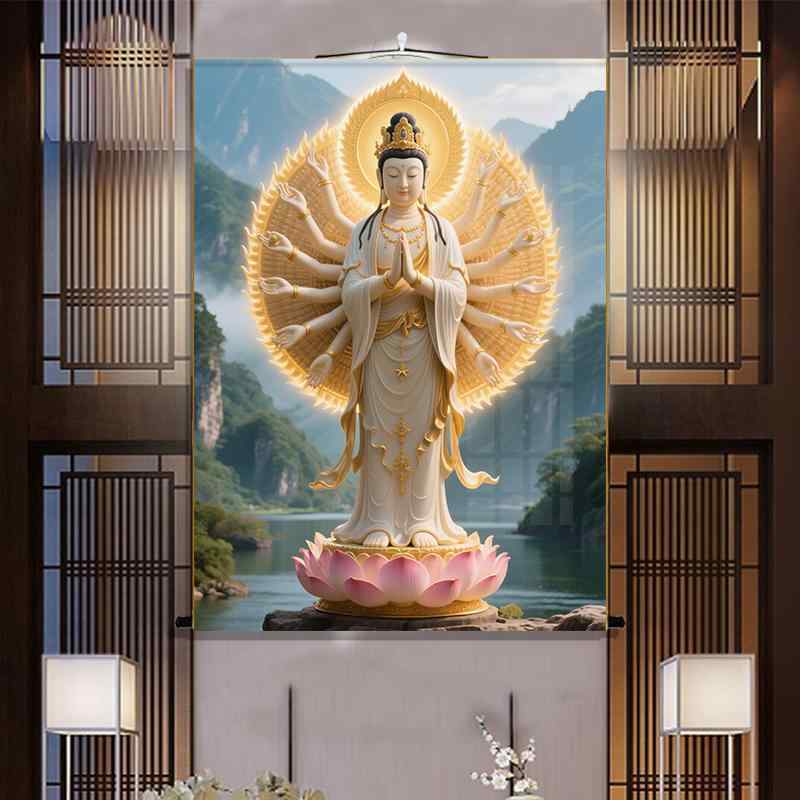 掛け軸 タペストリー 絵画 レトロ 古風 和風 インテリア 千手観音像 菩薩 肖像画 巻物 絹 布 仏教 禅 中国 飾り 書道 壁画