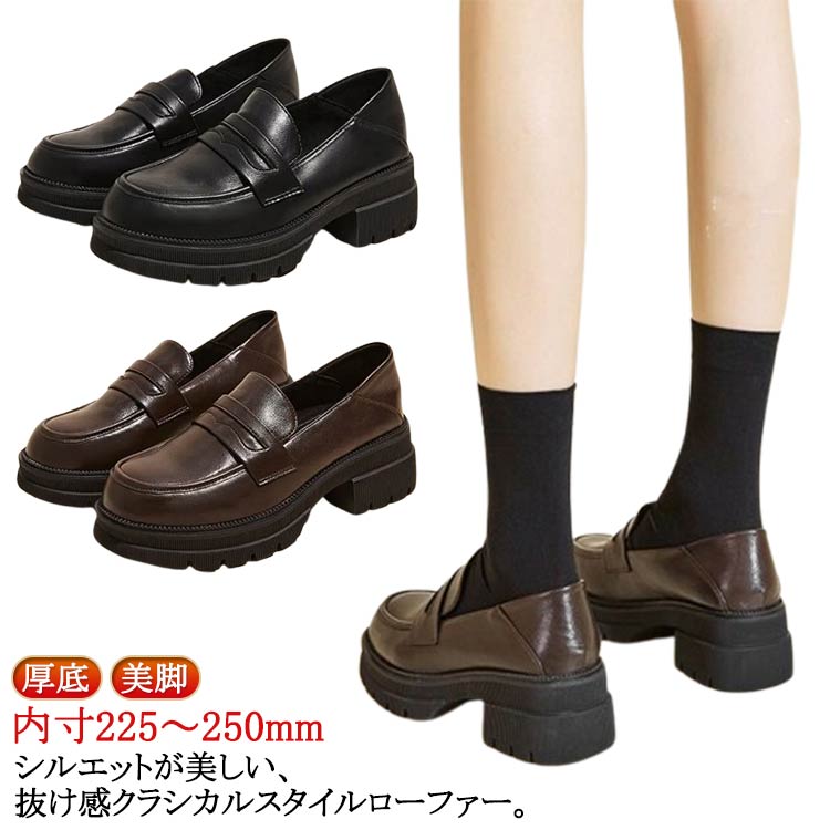 内寸225~250 厚底ローファー 美脚 学生靴 履きやすい 滑り止め