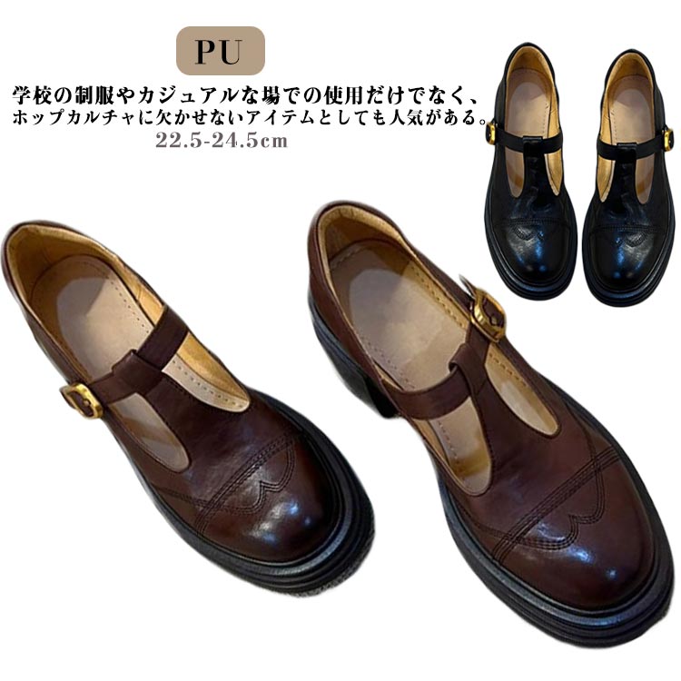 春秋 楽ちん フラットシューズ レトロ感 カジュアルシューズ 靴 可愛い 幅広 PUローファー 女性 レディース Tストラップシューズ シューズ