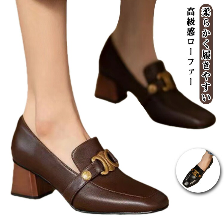ローファー 靴 レディース ヒール 5センチヒール ローヒール 太ヒール 消臭 軽量 合皮 大人 滑り止め 柔らかい 痛くない 疲れない コーデ 春 夏 秋 フォーマル お仕事 通学 冬