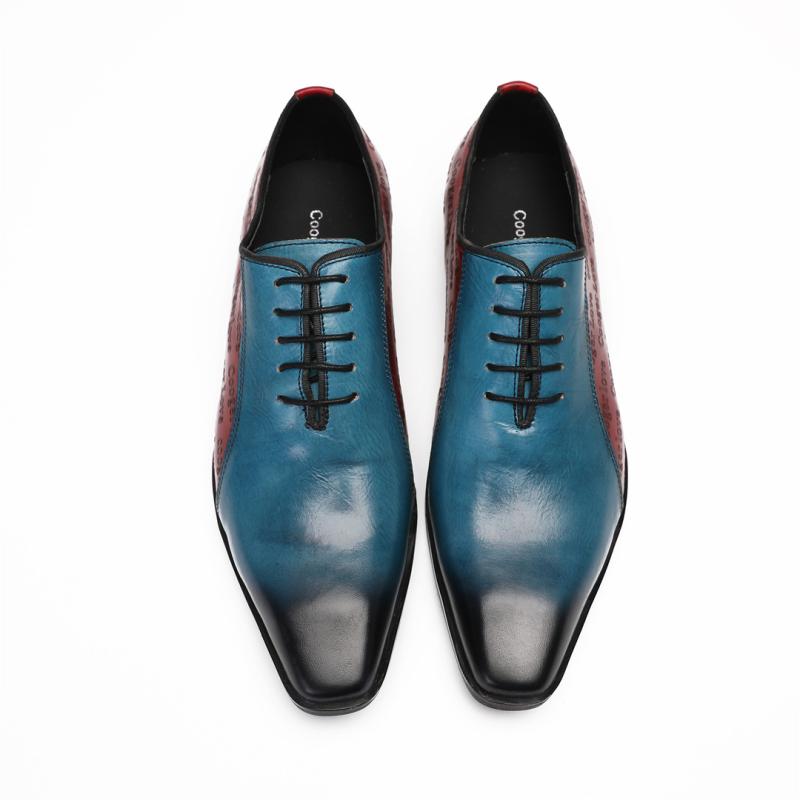 シューズ メンズ 男性用 革靴 牛革 レザー 本革 ビジネス フォーマル 冠婚葬祭 結婚式 新郎 ドレス オックスフォード ダービー ブローグ スクエアトゥ ローカット 防水 耐摩耗性 ロイヤ 通気性