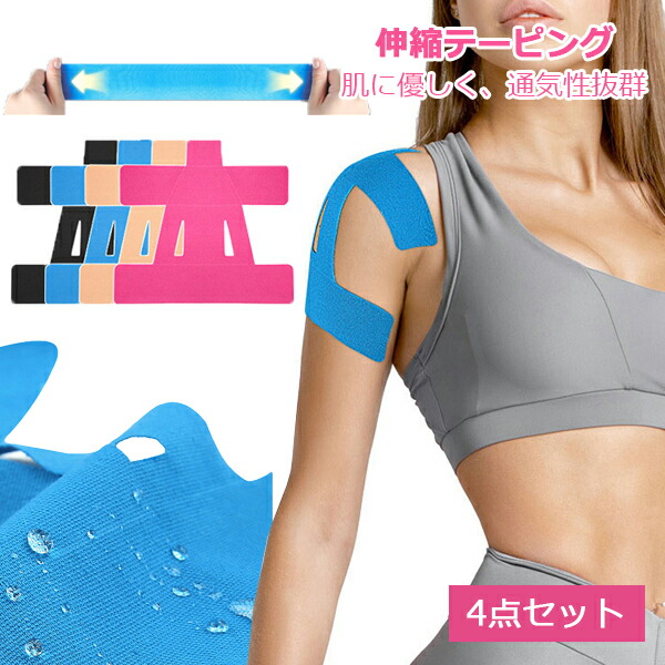 サポーター テープ 4枚セット テーピング スポーツ 肩かんたん 学校 体育 保健室 病院 フィットネス ジム 応急手当 ボディケア