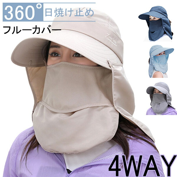 日よけ帽子 折りたたみ レディース カット つば広 フェイスカバー ネックカバー