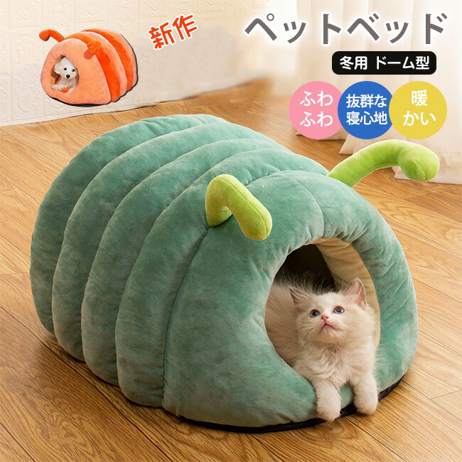ペットベッド 猫ベッド 猫ハウス ドーム型 キャットハウス 洗える ふわふわ 可愛い イモムシ造形