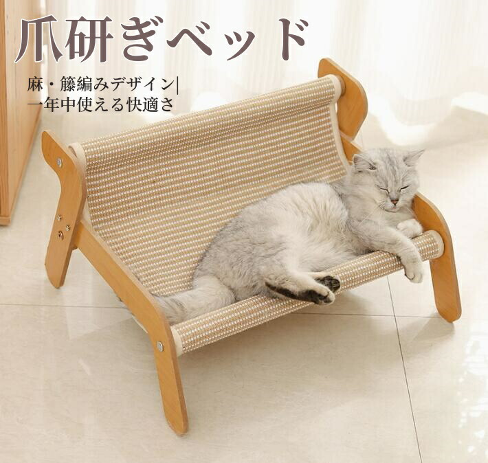 爪とぎ付きキャットチェア 木製 猫 爪研ぎ 編みクールソファ 通気性 快適 涼しい 遊び リラックス両用 高密度 木製安定構造 多機能