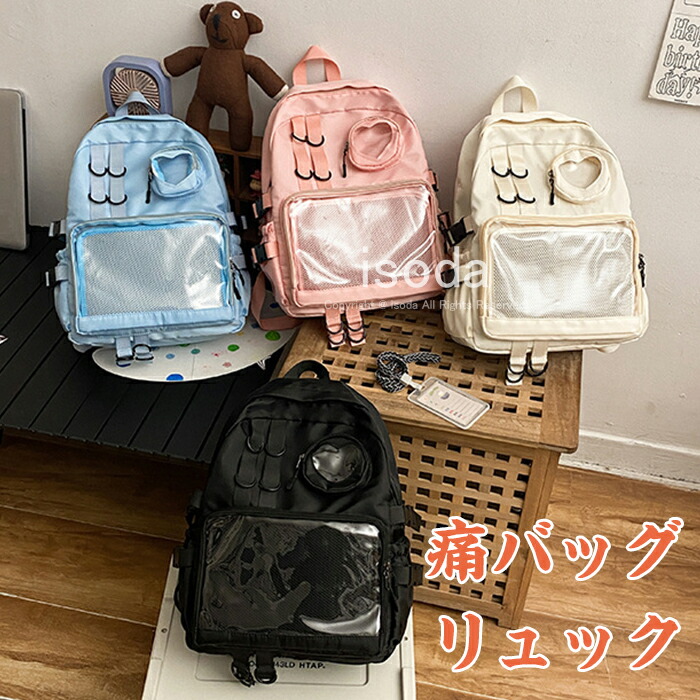 痛バッグ 痛リュック リュック レディース バックパック A4 リュックサック トートバッグ 透明ポケット 透明バッグ 缶バッチ デコ デコバッグ JK 推し活 推し活バッグ 推し活リュック オタ活