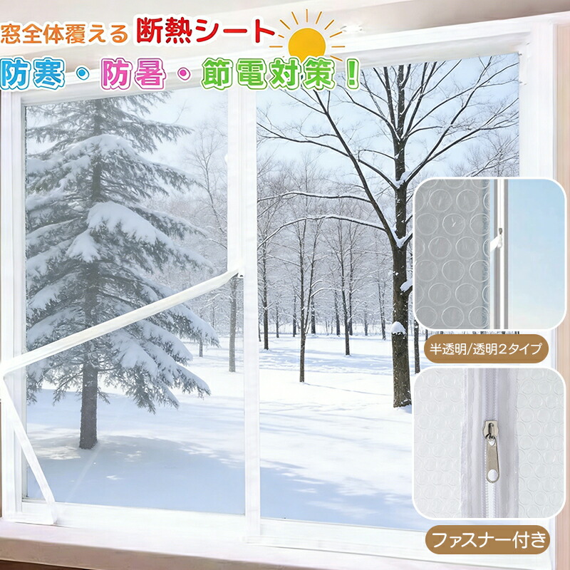 断熱シート ファスナー付き 窓からの冷気遮断 暖房効果UP 透明 マジックテープ式 賃貸OK 断熱フィルム 断熱カーテン 防寒 節電対策 ビニールシート 保温シート 断熱マット 隙間風対策 腰高窓用