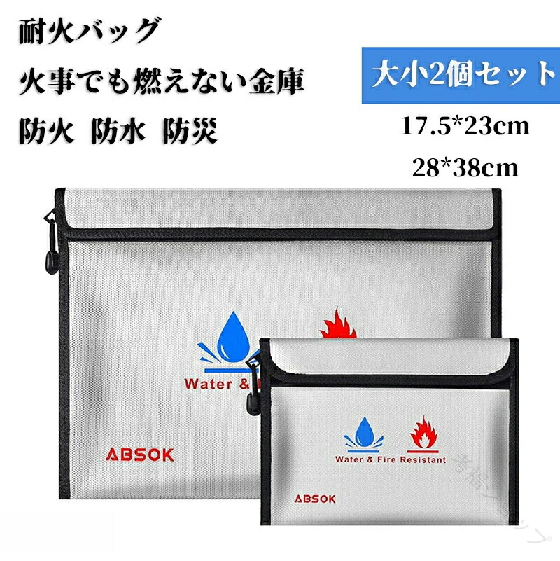 耐火バッグ 大小2個セット 防火袋 耐火金庫 家庭用 人気 火事でも燃えない金庫 防火 防水 防災 セーフティーバッグ ホワイト 耐熱素材で安心保管可能 防災対策に最適な防火防水バッグセット 収納
