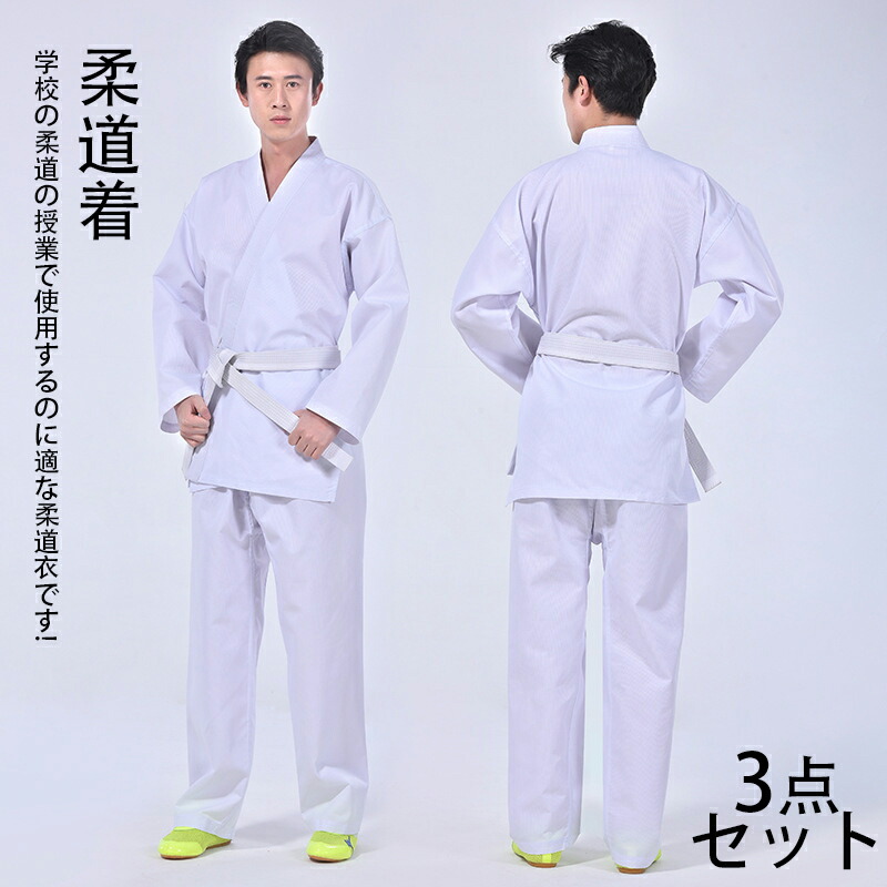柔道初心 子供用道着 白帯セット 空手初級 合気道入門 武道初めて 子ども用帯 稽古用 練習用白衣 ジュニア用武道着