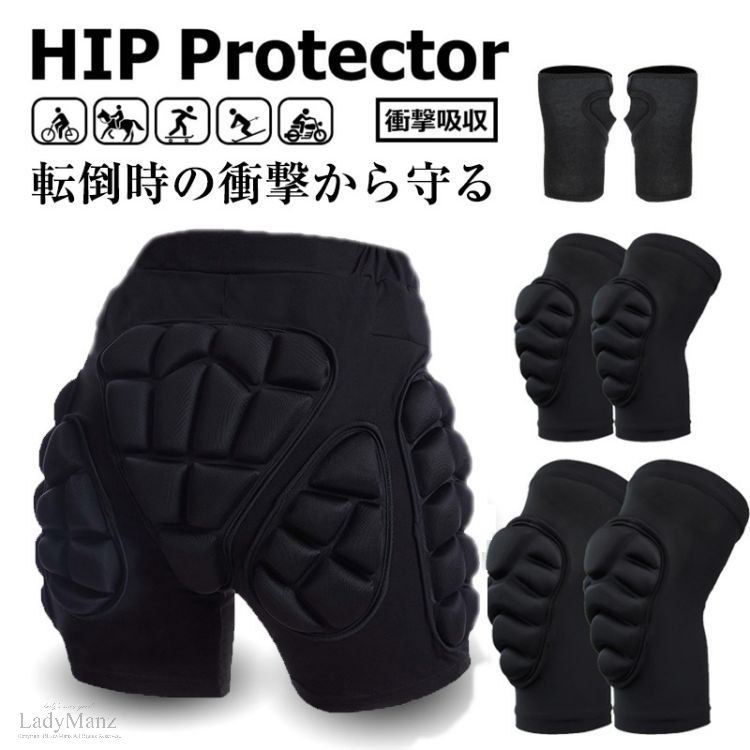 転倒時の衝撃から守る ヒップサポーター ヒッププロテクター ブラック 衝撃吸収 スキー バイク スケボー ケツパッド 保護具 膝パッド スキーパンツ サイクリング ダウンヒル トレ パッド入りショーツ