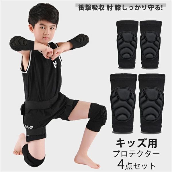 子供用 プロテクター 4点セット 肘 肘サポーター 膝サポーター 膝あて スポーツ 保護 軽量 怪我防止 伸縮性 通気性