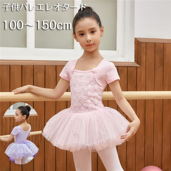 バレエ レオタード 子供 半袖 キッズ プレゼント レッスン スカート付き バレエ用品 股下スナップ 子ども 新体操 練習着 演出用 ダンスウェア ダンス衣装 ストレッチ パープル 100 1 ピンク