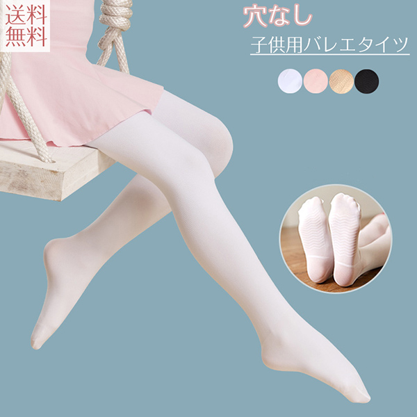 穴なバレエタイツ 子供用 ジュニア 滑らか 肌触り シンプル 黒 白