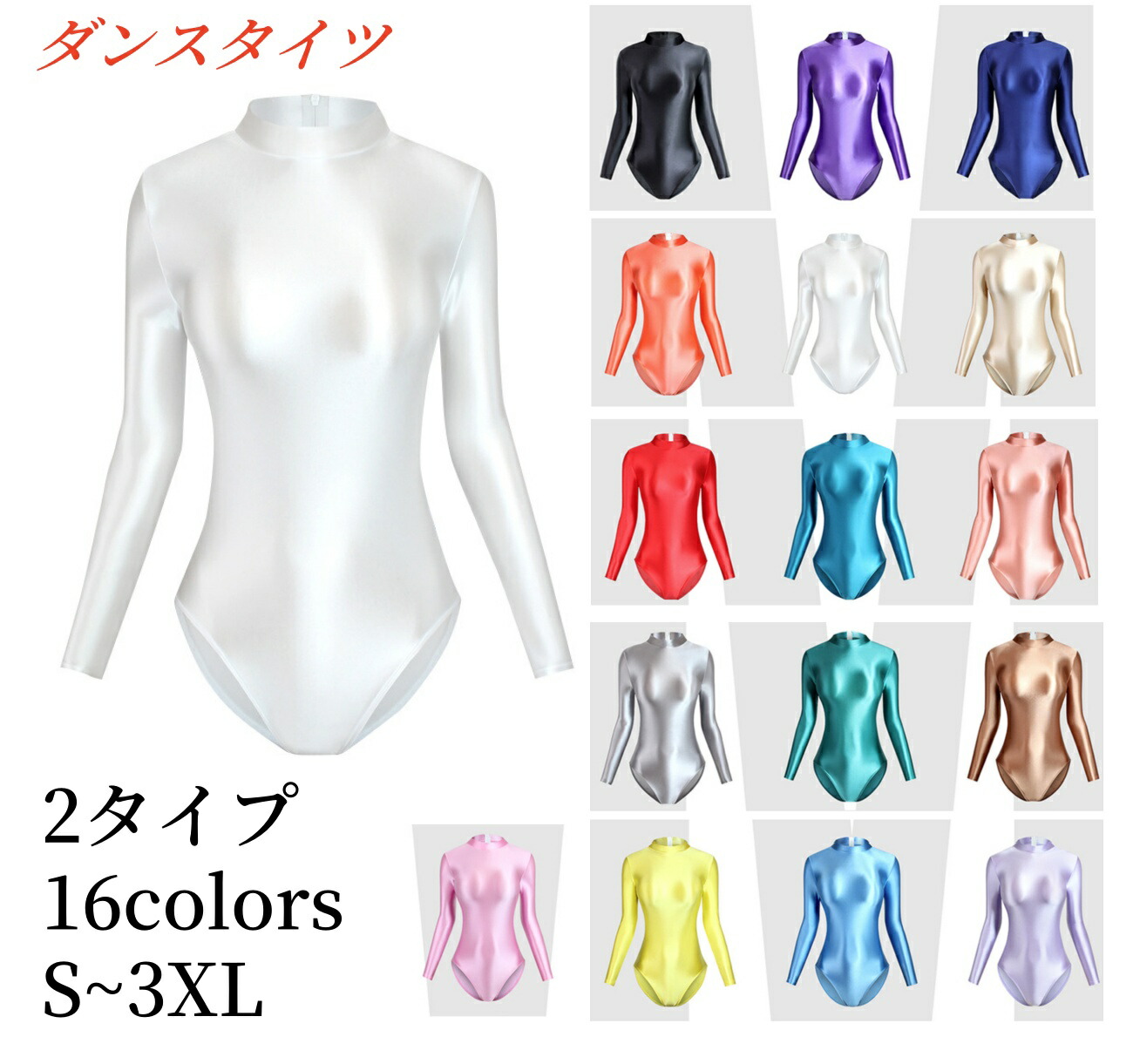 長袖レオタード 体操タイツ バレエ ダンス 光沢 全身タイツ 伸縮性あり コスプレ ハロウィン衣装 イベント パーティー 文化祭 舞台衣装 16色 体操
