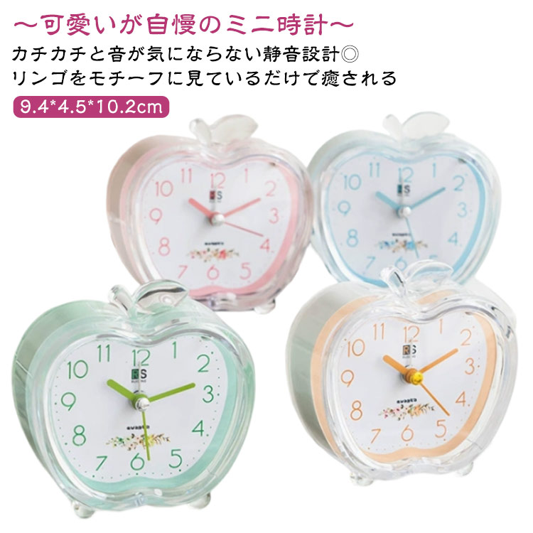 ライト付き 目覚まし時計 置き時計 卓上 アラーム 静音 小型 アナログ ミニ 静か 常夜灯 ライト機能 電池式 おしゃれ リンゴ かわいい リビング 寝室 小さい ナイトライト テーブルクロッ 時計