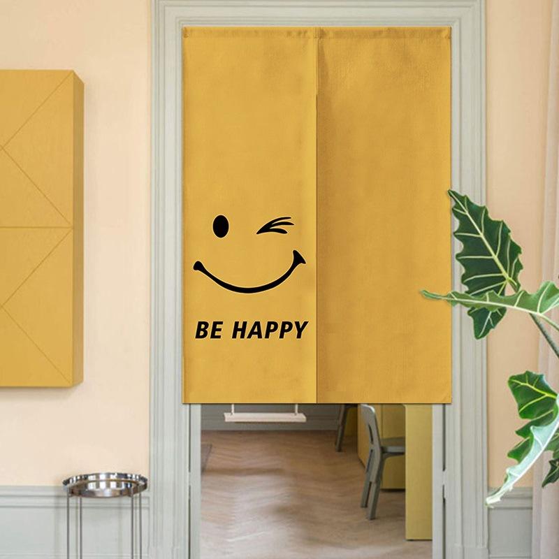 のれん インスタ風 おしゃれ かわいい スマイル にこちゃん 布製 間仕切り 目隠し 和風 家庭用 キッチン トイレ 玄関 ダイニング 半分丈 分割式 リビング