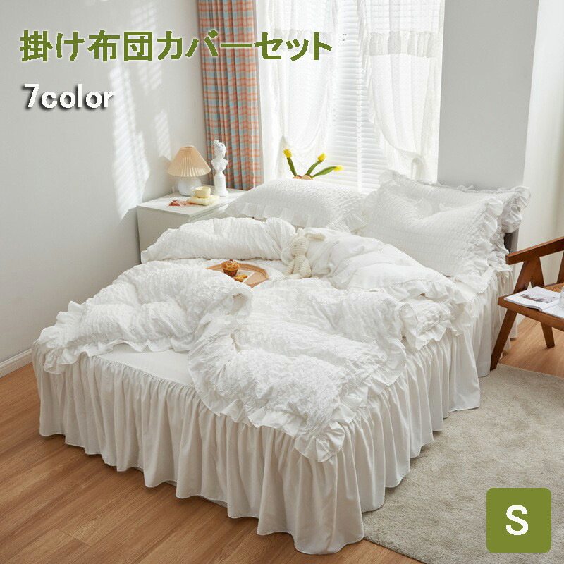 布団カバーセット ベッドスカート 掛け布団カバー シングルサイズ フリル かわいい 健康 安眠 サラサラ 快適 布団カバー ベッドカバー 寝具カバー 柔らかい 北欧 吸汗速乾通気性 快眠 肌 おしゃれ