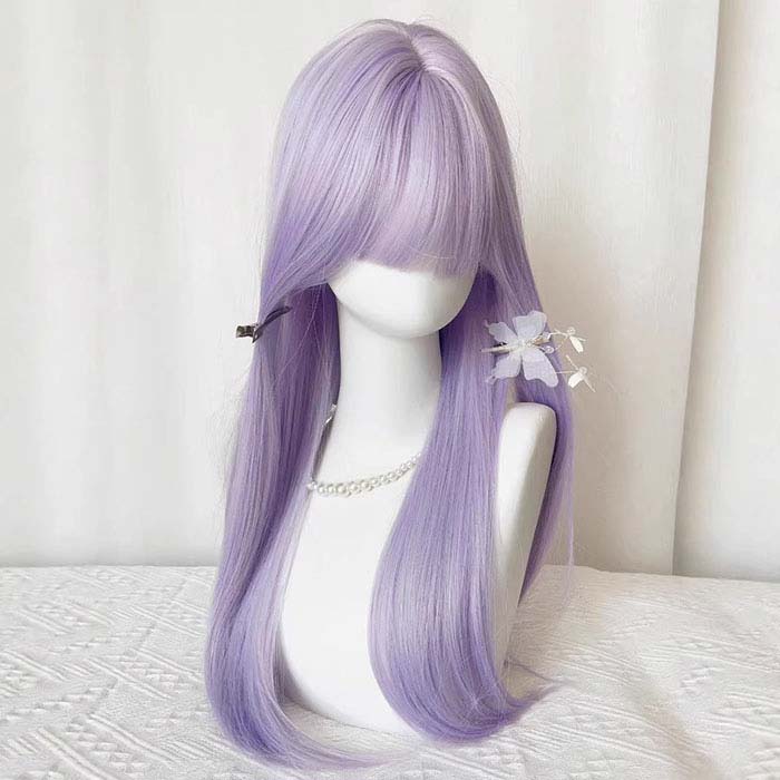 ウィッグ ロリータ風 日常可 原宿風 かつら パープル 紫髪 前髪 つけ毛 レディース コスプレ ハロウィン 耐熱 コスチューム ロング 小顔効果抜群 仮装 大人用 dm かわいい