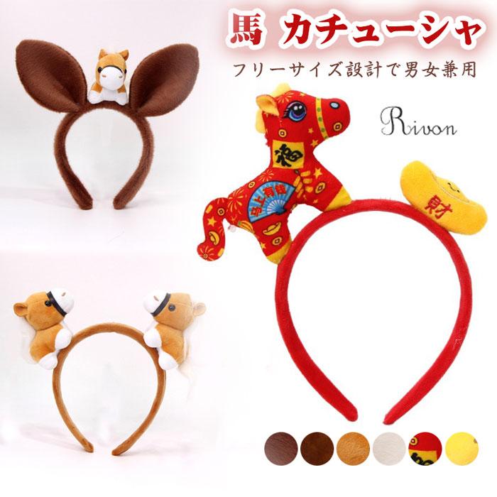 馬 カチューシャ かぶりもの ヘアバンド 髪飾り ぬいぐるみ 2026年 干支 午年 女の子 レディース 可愛い 滑り止め 痛くない アニマルカチューシャ コスチューム小物 ヘアアクセサリー 年 仮装
