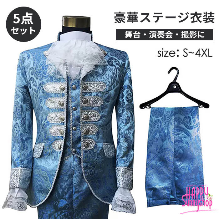 ステージ衣装 メンズ 男性用 貴族風 王子様 衣装 中世 ヨーロッパ 王族 舞台衣装 演出服 演劇 貴公子 オペラ 声楽 カラオケ 忘年会 ジャケット パンツ レース ペイズリー ジャガー 上下セット