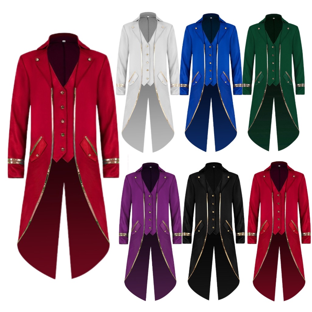 メンズ用制服ハロウィンコスプレ衣装ステンカラージャケット舞台ステージ演出服 マジシャン 魔術師 マジック 歌手司会者 長袖ジャケット レトロコート4色 男性用礼服