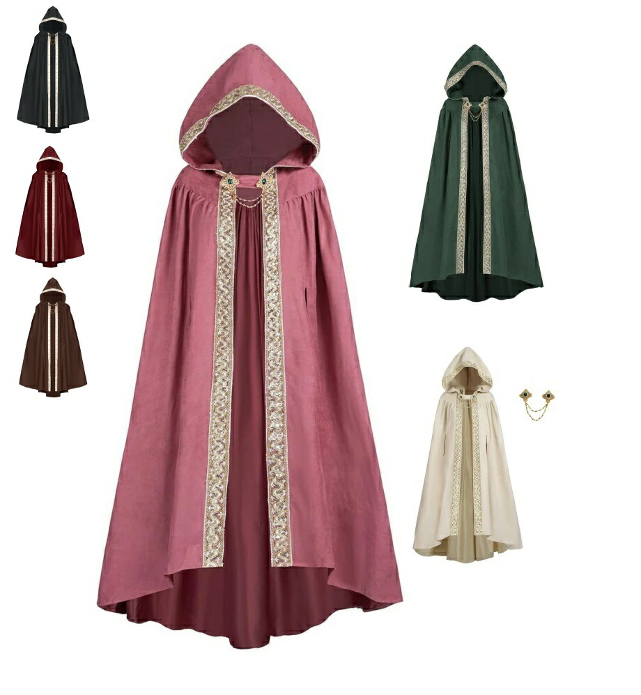 ロングフード付きマント コスプレ用 レディース コスチューム衣装 中世風 貴族風 ヨーロッパ 宮廷風 魔術師用 伯爵夫人 舞台演劇 コスプレ衣装 大人用 仮装 ハロウィンパーティーイベント 舞台 変装