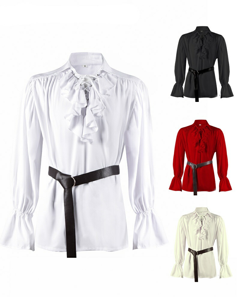 中世風 大人用コスプレシャツ 舞台衣装 メンズ 長袖 男性 フリルトップス レトロシャツ パンク 欧風 ヨーロッパ風 王子様 貴族コスプレ ステージ衣装 ハロウィンコスチューム ハロウィンパー 吸血鬼