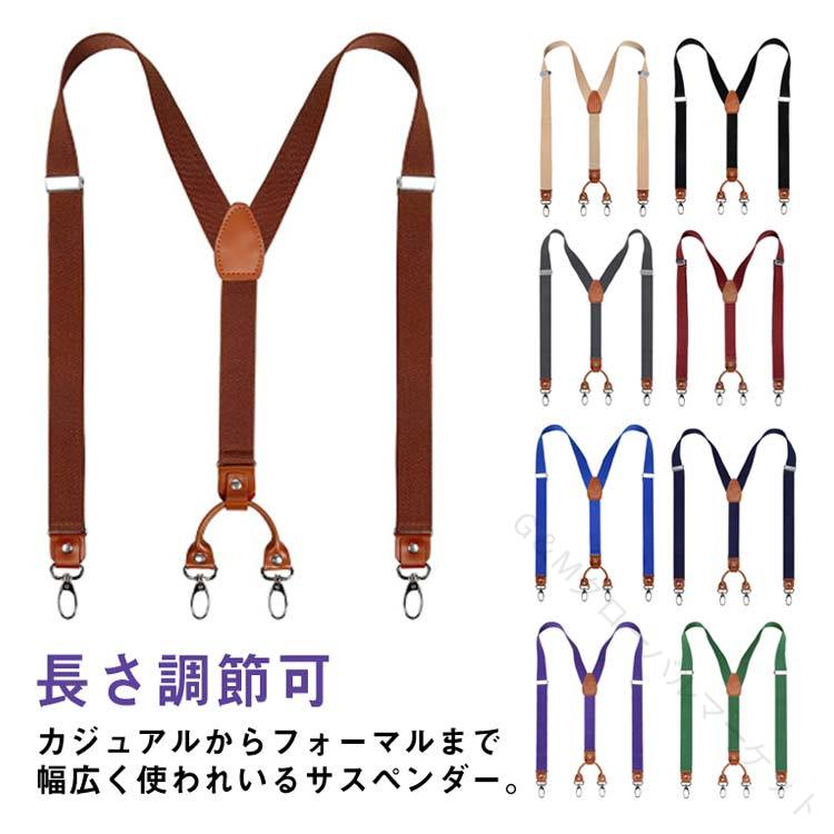 サスペンダー Y型 メンズ レディース 4クリップ 25mm幅 長さ調節可 ズボン吊り 無地 アクセサリー おしゃれ 大人用 紳士用 ストレッチ性 ビジネス カジュアル フォーマル 作業用 スーツ用品