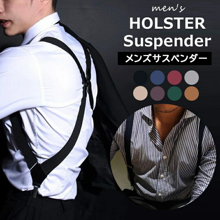 ホルスター 型 サスペンダー メンズ クリップ 式 型 ビジネス スーツ 用 おしゃれ 8色 展開