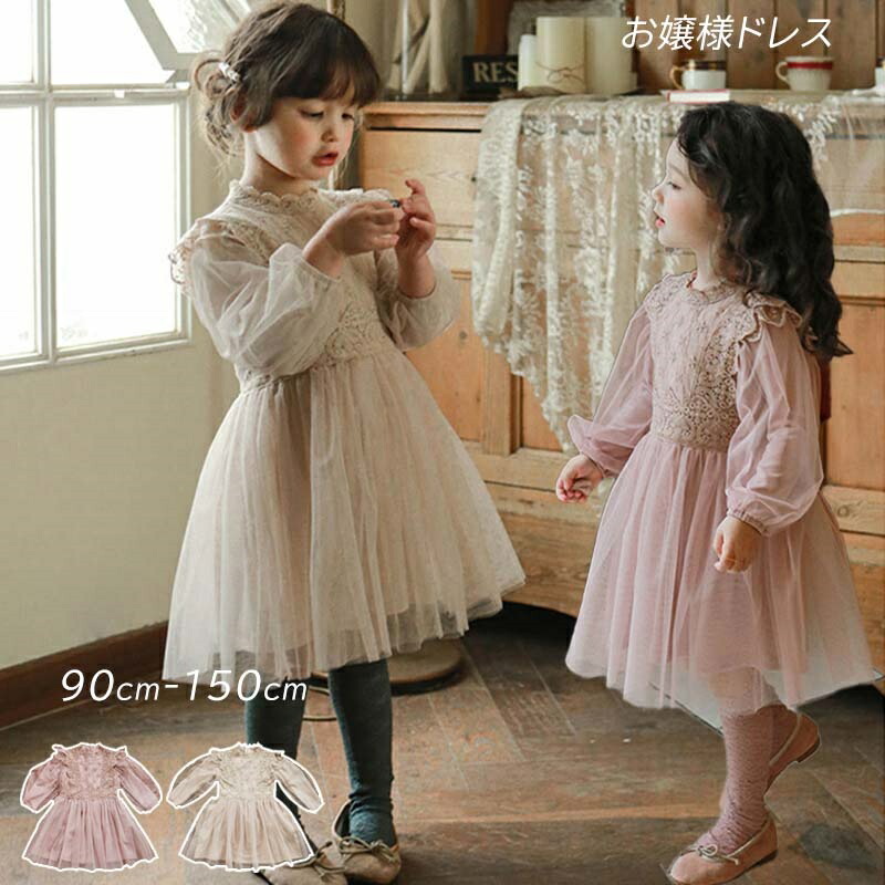 子供ドレス パフ袖 キッズドレス 入学式 ワンピース レーススカート 長袖ドレス フォーマル レース風 結婚式 発表会 フラワーガール ウェディング 記念撮影 洋服 秋 お姫様 子どもドレ プリンセス