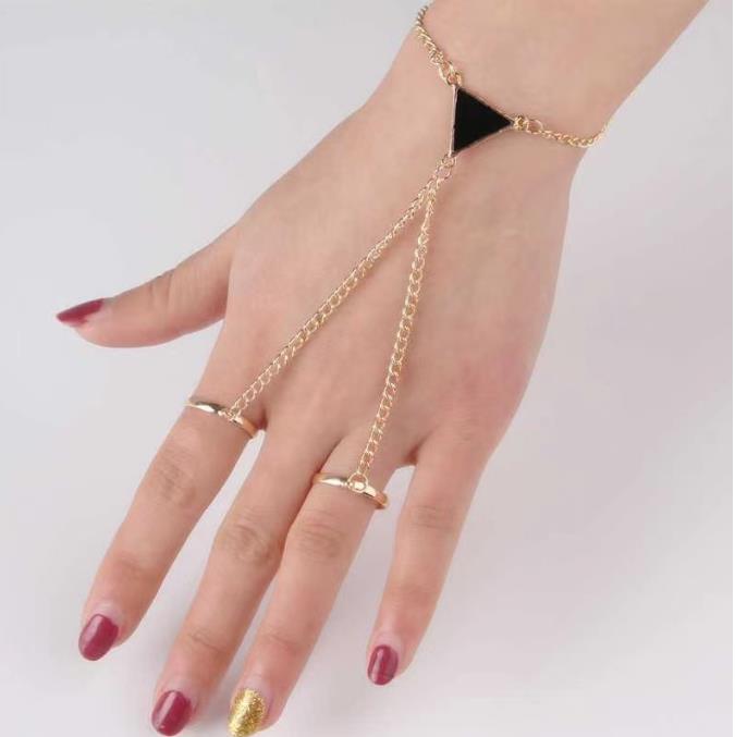 ハイエンド人気レトロシンプル三角形リングジュエリーブレスレット女性個性気質ニッチデザインレトロミトンハイエンドハンドジュエリー幾何学手アクセサリーインディアンダンスパフォーマンスダンス衣装練習用ジュエ