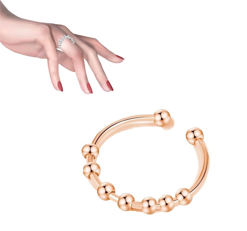 ストレス解消 リング ステンレススチール リング ビーズ付き リングスピナー 可動ランナー ジュエリー ユニ 調節可能 回転 男女兼用