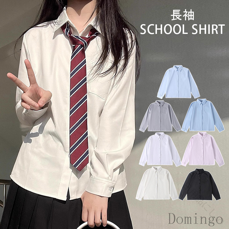 スクール シャツ ワイシャツ 制服 長袖 レディース 長袖シャツ 学生 中学生 高校生 大学生 用 無地 シンプル jk JK 学院風 通学 春 秋 春服 秋服 夏