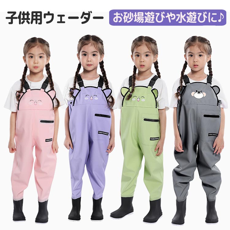 プレイウェア 子供用 お砂場着 ブーツ一体型 こども キッズ ウェーダー 長靴一体 サロペット 防水 レインパンツ レインシューズ レインウェア 男の子 女の子 胴付長靴 オーバーオール 遊び着 釣り