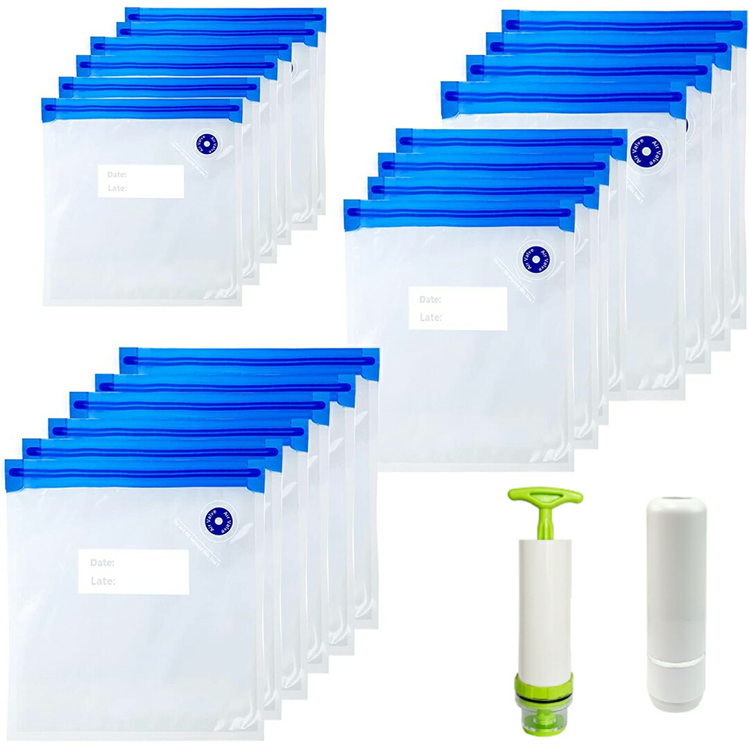 5枚セット 真空パック 袋 真空保存袋 10枚 手動ポンプ PA&PE材質 二重チャック 新鮮度長持ち 抗菌袋 圧縮袋 真空パック機 超小型 電動真空ポンプ 強力吸引 60Kpa吸引力