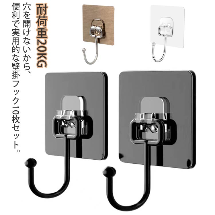 10枚セット 壁掛けフック 穴開けない 粘着フック 壁 強力フック 防湿 錆びない 防水 超強力 浴室 キッチン お風呂 バスルーム 粘着 便利 耐荷重20KG 貼 引っ掛け