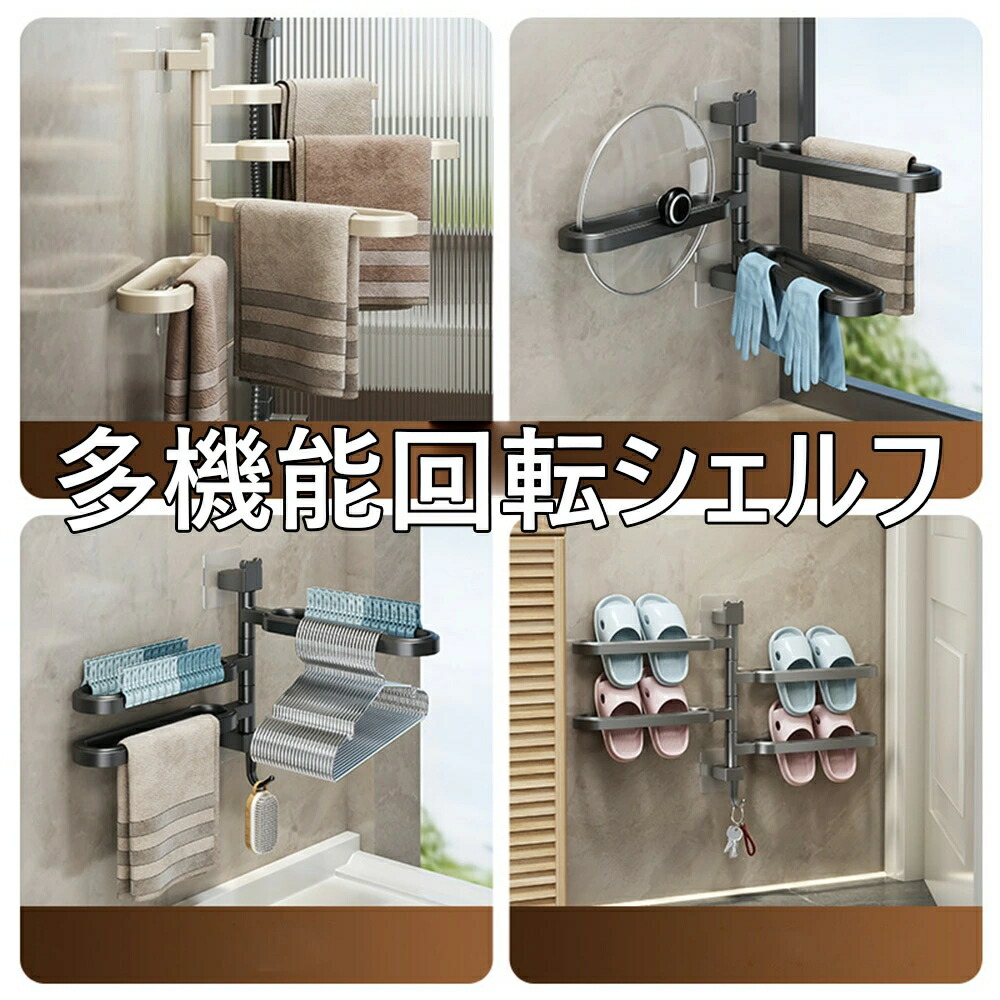 タオルハンガー タオル掛け スイングアーム 洗面所 タオルバー 壁掛け 省スペース 高品質ABS製 吸着式壁掛け 水切り 穴あけ不要 強力粘着 お風呂 キッチンペーパーホルダー 収納ラック