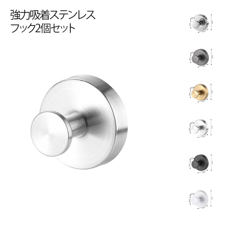 壁掛け 吸盤フック ステンレス キッチン 真空吸着 おしゃれ 衣類 フック 小物 タオル掛け 玄関 2個セット 浴室 洗面所 賃貸 穴あけ不要 簡単設置 寝室