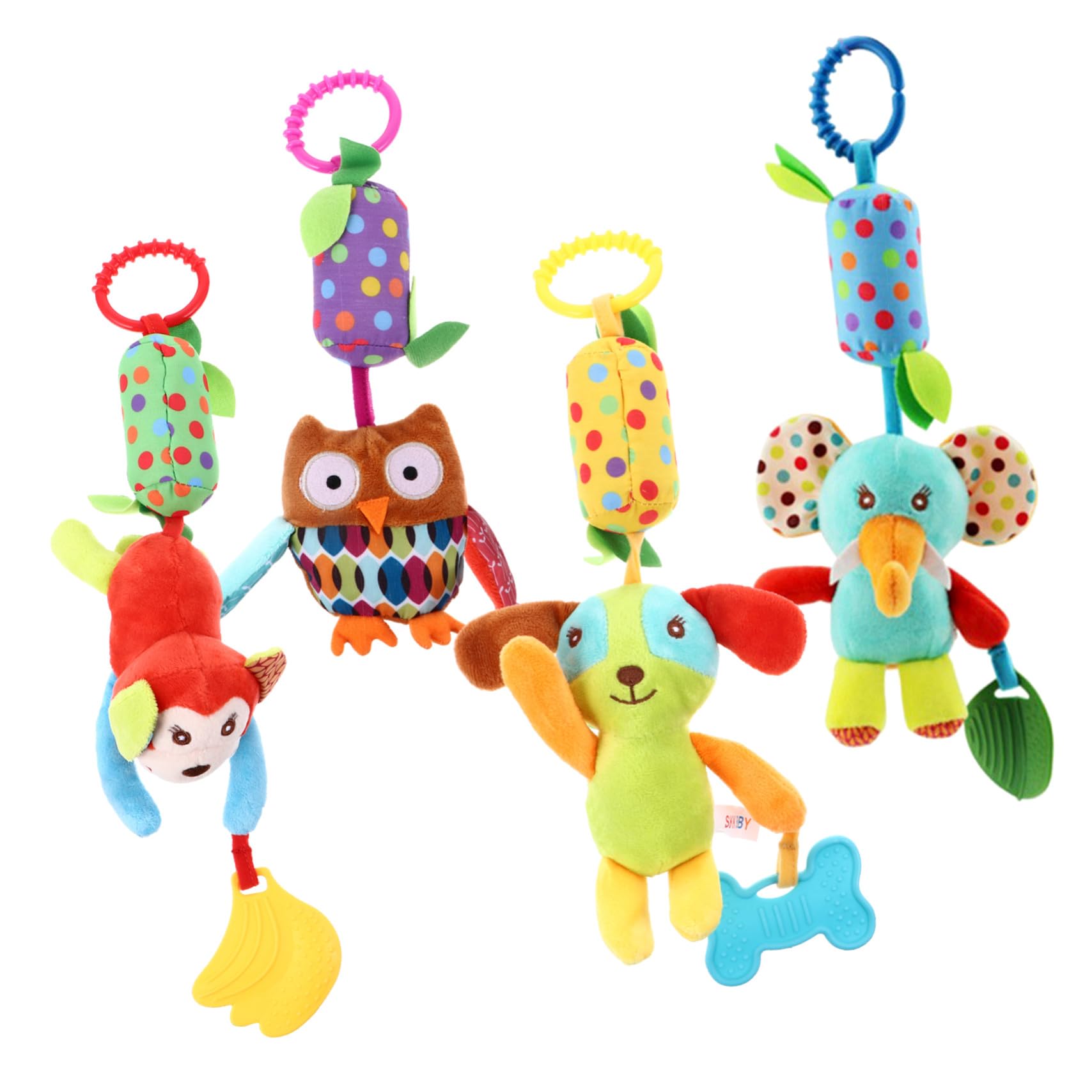 4個 ベビーカー用 素材ラトル 多機能ちゃん吊り下げおもちゃ 快適で耐久性抜群 新生児 に 簡単取付け可能