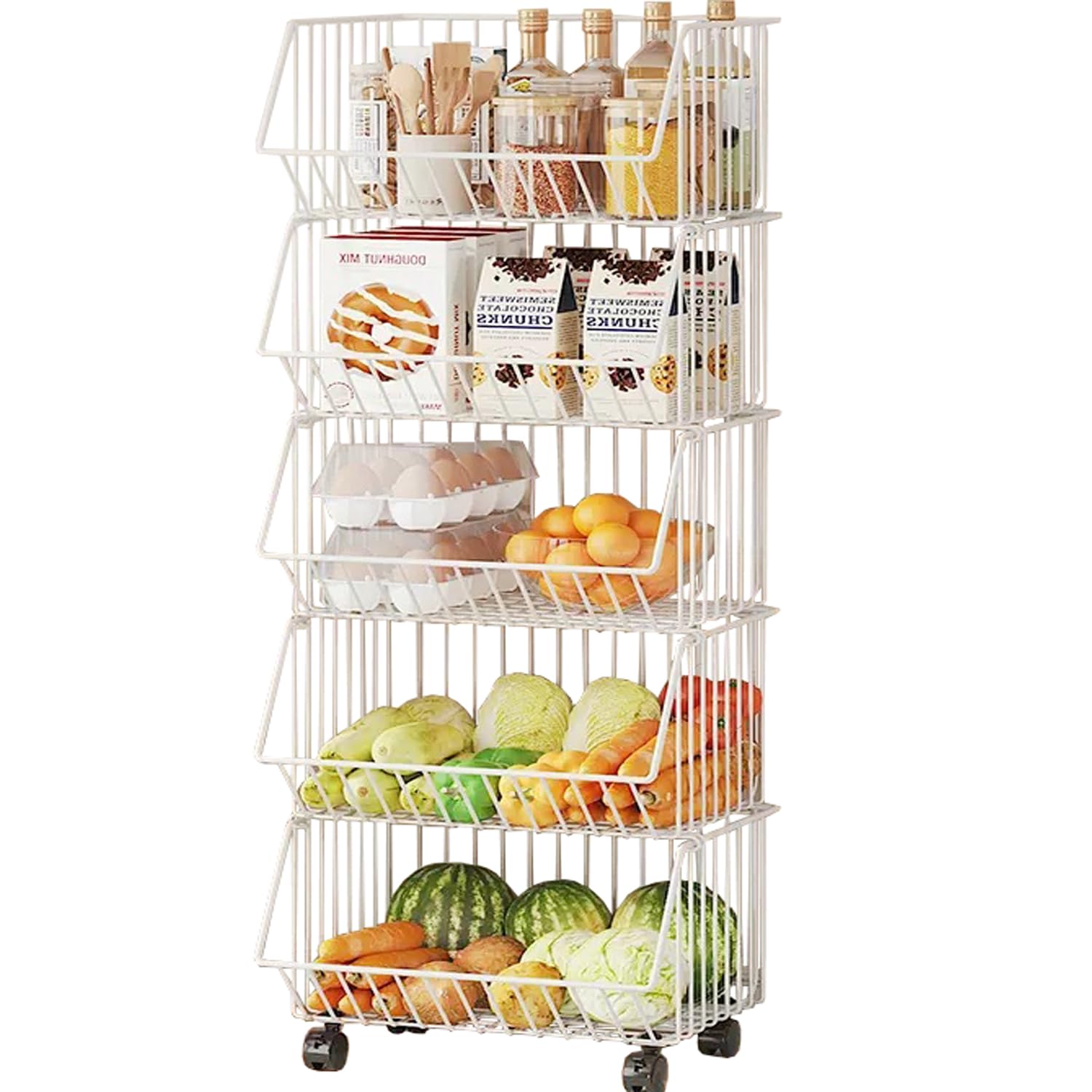 キッチンワゴン スチールラック 収納ワゴン 収納バスケット 収納棚 キャスター付き 取り外し 多機能ランドリー収納 調味料 皿 野菜 服 洗濯室 バルコニー 組立簡単 雑貨収納収納