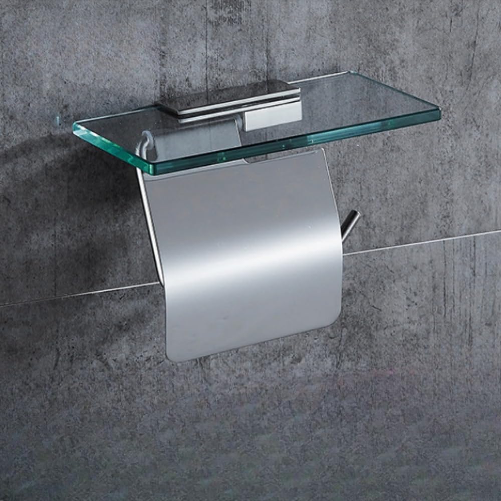 トイレット ペーパー ホルダー 棚付カワジュン ペーパーホルダーガラス棚付ダブルペーパー、取り付けが簡単、ステンレス鋼製バッフル ガラス