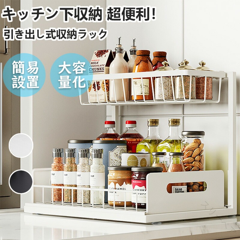 シンク下 収納 スライド ラック 引き出し 調味料 収納 キッチン 収納 棚 食品 ラック キッチン下 収納 スライド式 収納