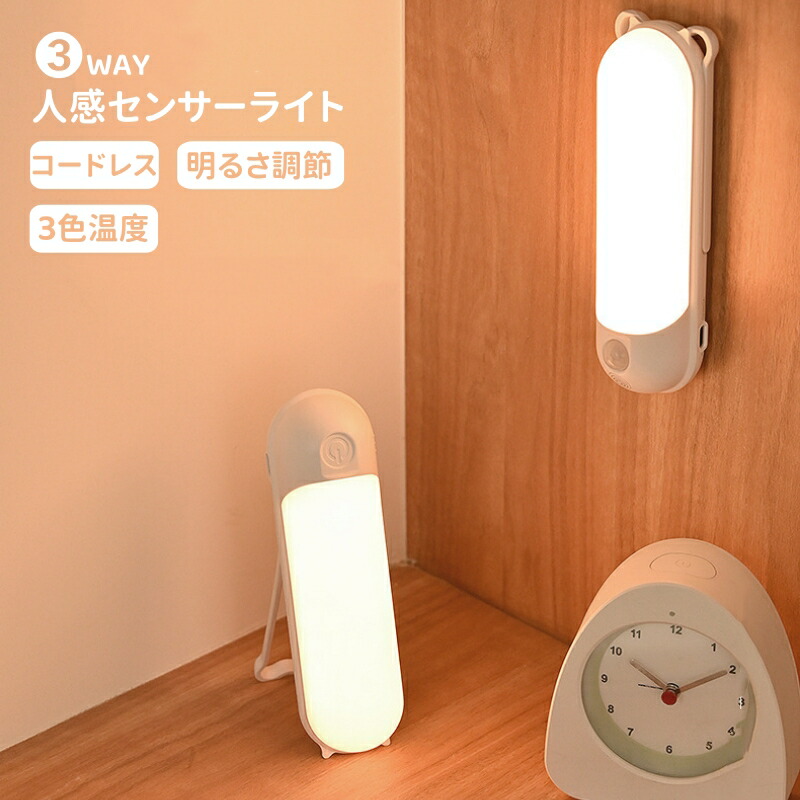 人感センサーライト 室内 充電式 貼り付け マグネット式 置き型 壁掛け 玄関 廊下 階段 寝室 キャビネット クローゼット 足元灯 おしゃれ インテリアランプ 寝室 階段 送料無料