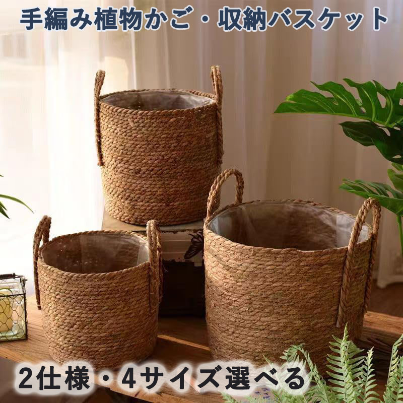 収納バスケット 鉢カバー 観葉植物用 プランターカバー 手編み シーグラスバスケット フラワーポット おしゃれ 鉢植えカバー 落ち着いた草編み ギフト 開店祝い 洗濯かご 多用途収納籠