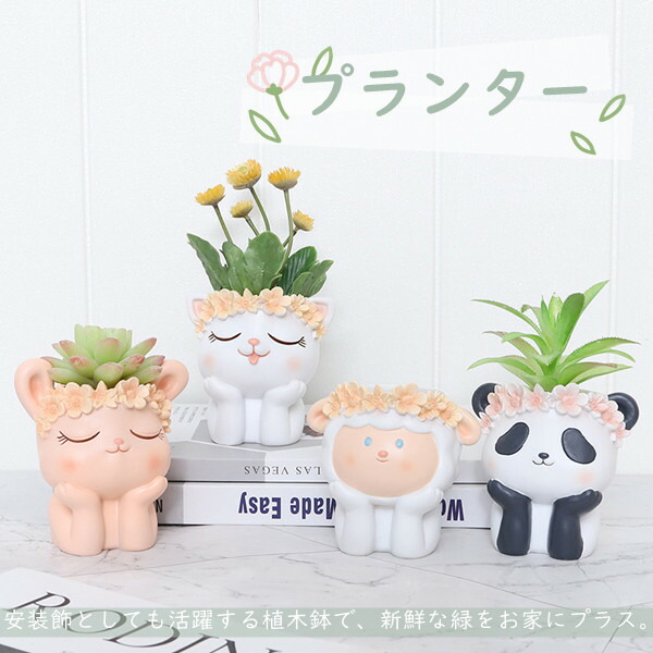 送料無料 プランター 植木鉢 樹脂 容器 卓上 多肉植物 かわいい ミニ 多肉 苔 動物 寄せ植え 置物 アニマル 母の日 コケリウム 苔リウム 鉢 サボテン インテリア 小物収納 雑貨