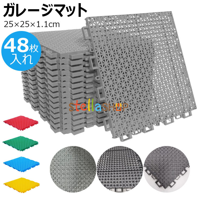 水はけマット ベランダ ガーデン用ジョイントマット 48枚入れ はめ込み式 水切り 業務用床マット 人工芝用水はけ床マット 25×25×1.1 滑り止め 玄関廊下 プールサイド ベランダ