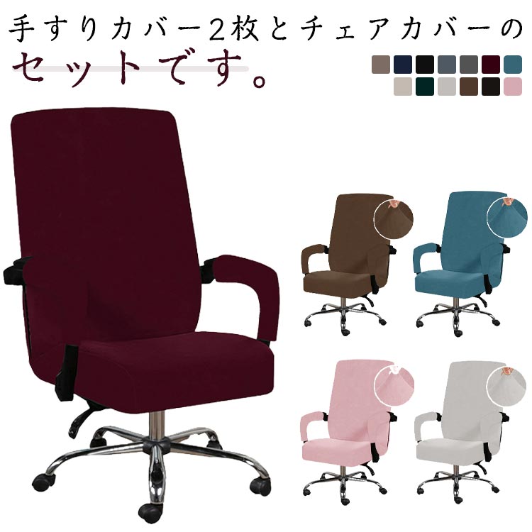 背もたれ 回転椅子カバー ストレッチ 手すりカバー2枚付き 回転式 もこもこ コンピューターチェアカバー オフィス用 椅子カバー 座面部分と背もたれ一体式 シンプル 無 事務椅子