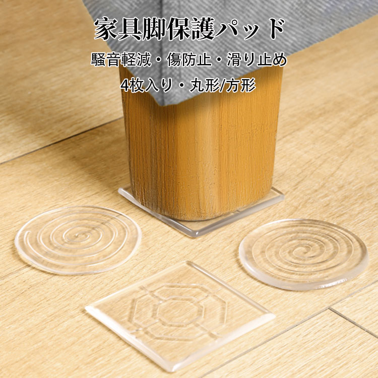 傷防止パッド 家具保護パッド 4枚入り 椅子脚キャップ 椅子脚カバー クリア 床保護マット 畳 へこみ防止 丸脚 角脚対応 イス テーブル 床傷 騒音防止 足キャップ 滑りにくい 椅子脚カバ キズ防止