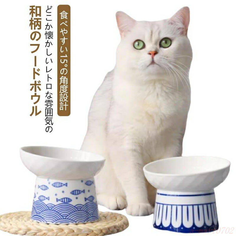 ごはん ペット食器 器 猫 フードボウル 陶器 食器 食べやすい 高さがある ご飯皿 餌皿 餌入れ おしゃれ エサ入れ 斜め ひげが当た 水飲み器