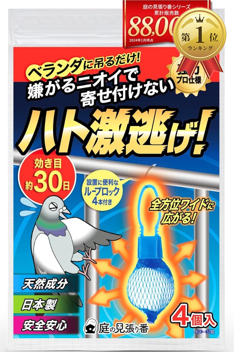 ハト激逃げ 鳩よけ 鳩よけグッズ ハト対策 強力プロ仕様 天然香料 設置に便利なループロック付 4個入 約2m分 効き目約1ヶ月